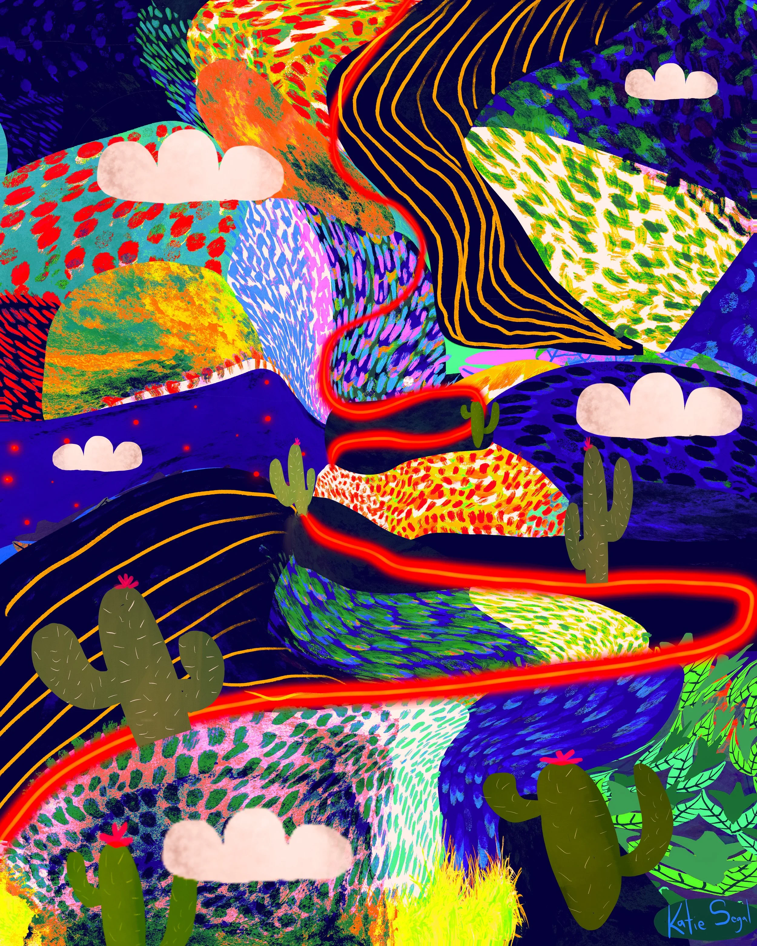 Kate Segal is an artist, illustrator, and printmaker. She was born and raised in Manhattan, New York. Her art incorporates her signature use of bright colors and is embedded with themes of nature and the human condition, with an emphasis on the female experience.